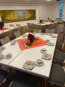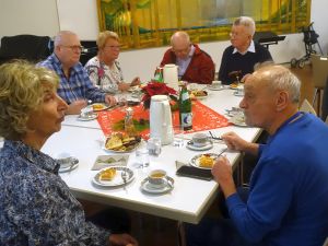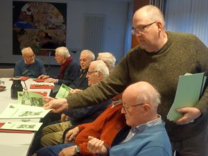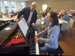 ![]() Die Noten werden verteilt, dann geht es in die große Halle des Seniorenzentrums.