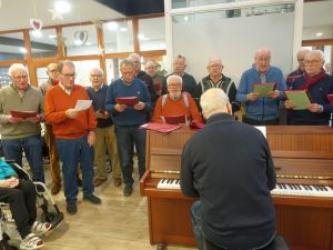 ![]() Die Noten werden verteilt, dann geht es in die große Halle des Seniorenzentrums.